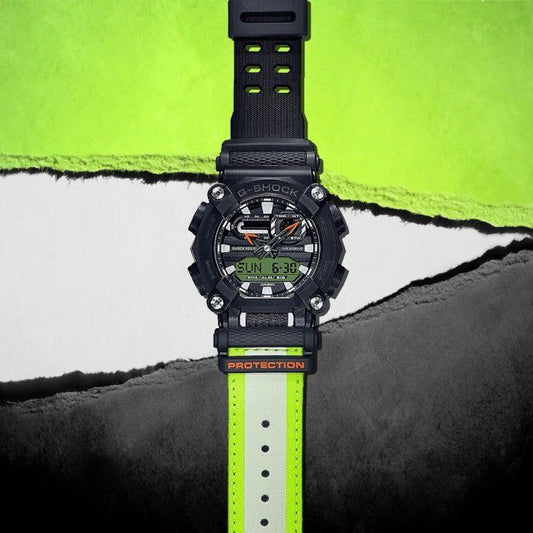 Casio G-Shock Analog-Digital Black Dial Men's Watch GA-900E-1A3JR-2 Neon Resin Band And Extra Black Belt & Black Case Men Sports Watch