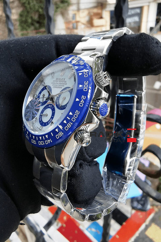 ROLEX Ceramic COSMOGRAPH Daytona Automatic Blue Chronograph White Dial Watch With Stainless Steel Strap Men's Watch RLX-B116500BC