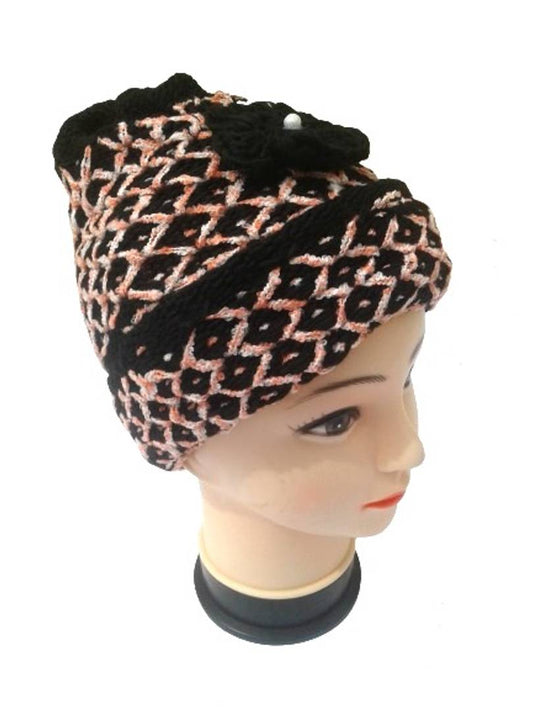 Women Knitted Woolen Black Color Cap (Pack of 1)