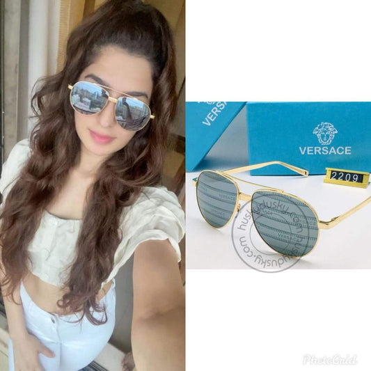 Versace Branded Grey Color Glass Men's Women's Sunglass For Man Woman or Girl VER-125 Gold Stick Sunglass