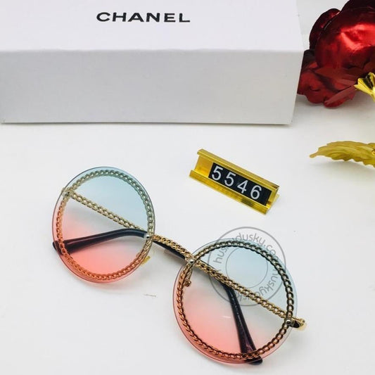Chanel Branded Multi Color Red&Blue Shade Glass Women's Sunglass For Woman or Girl CHA-47 Gold And Black Design Stick Gift Sunglass