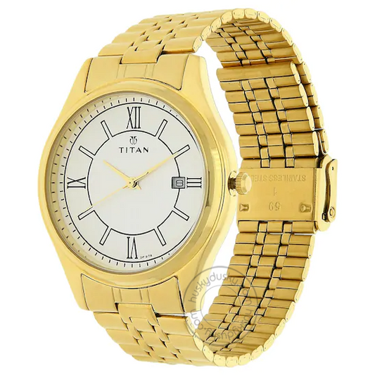 Titan White Dial Golden Stainless Steel Strap Watch 1713YM02