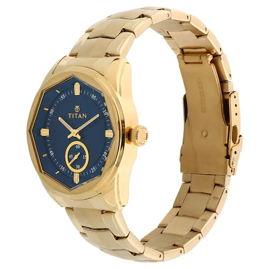 Titan Regalia Sovereign Analog Blue Dial Golden Stainless Steel Strap Watch NM1749YM01