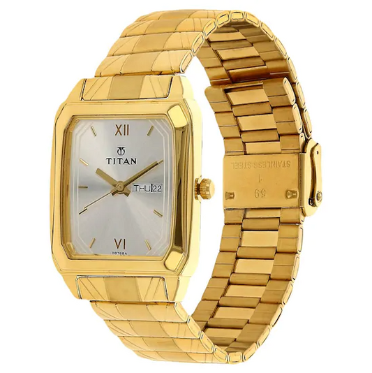 Titan Regalia Analog Silver Dial Golden Stainless Steel Strap Watch NM1521YM01