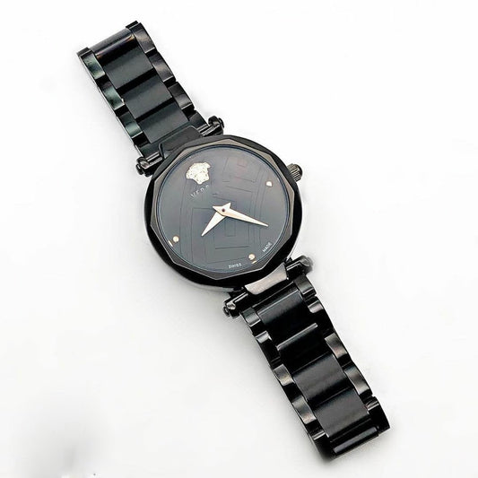 Versace Black Color New Stylish Branded Women's Watch For Women And GirlsBlack Dial With Metal Case Best Gift Watch Ever VER-578