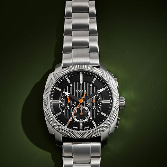 Fossil Chronograph Black & Silver Dial Leather Men's Watch - FS-4812