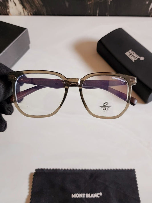 Mont Blanc MB-9036 Transparent lens Grey Color Frame Glasses Men's and Women's Sunglass For Man and Woman Or Girls Bold Stick Unisex gift Sunglass
