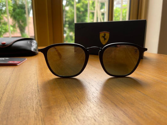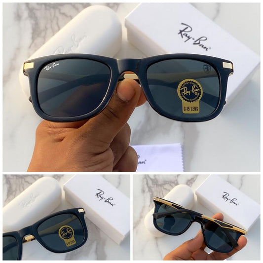 Rayban Branded Stylish Men's Sunglass Black Color Glass With Golden Frame RB-382