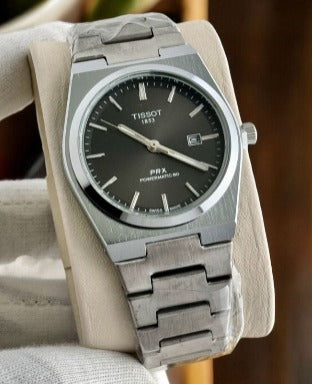 Tissot PRX Powermatic 80 Black Dial Silver Steel Strap Watch for Men - TS-4102
