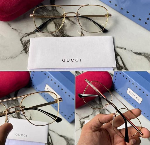 Gucci Transparent lens Sunglass for Man Woman's or Girl GU-20111 Golden Stick Frame Gift Sunglass
