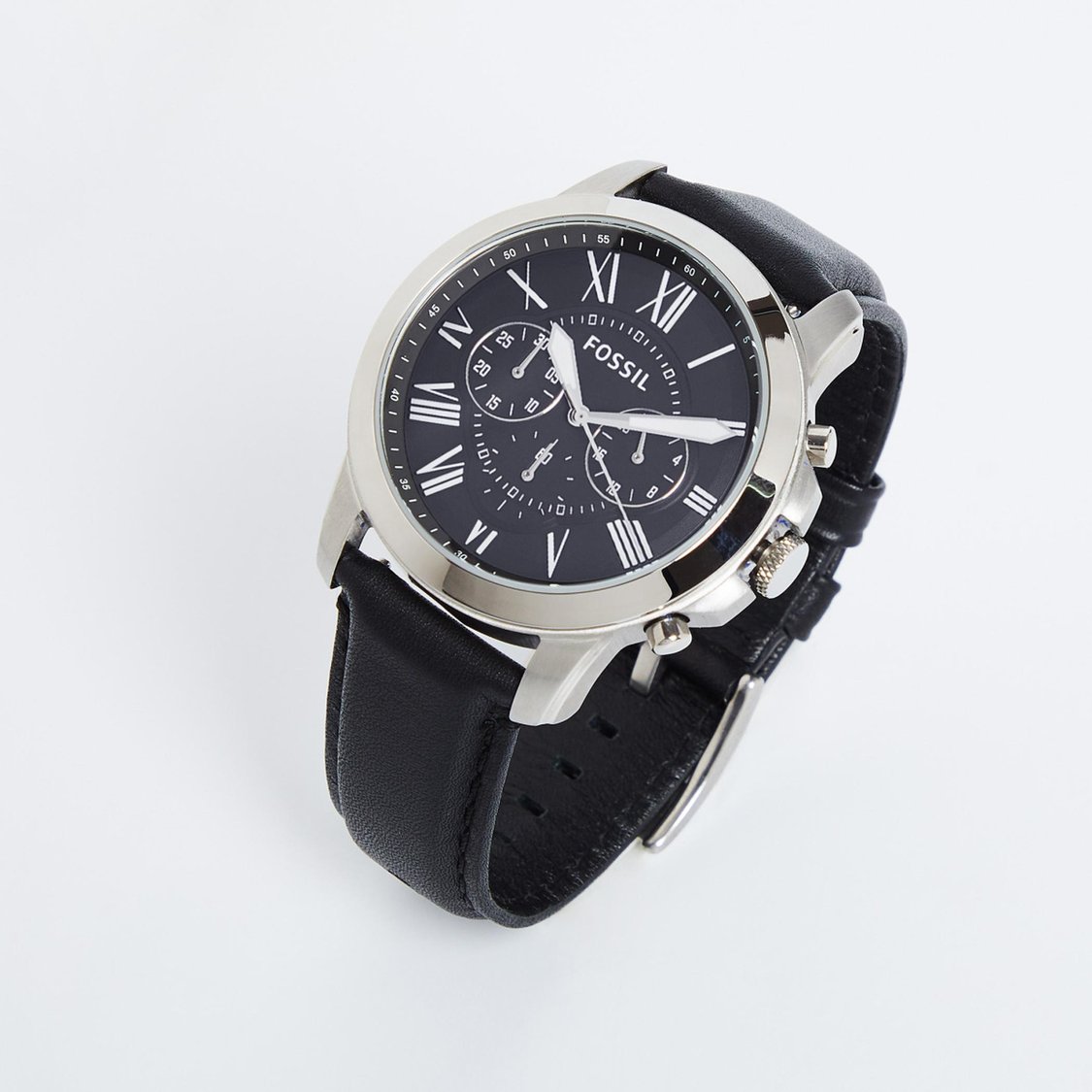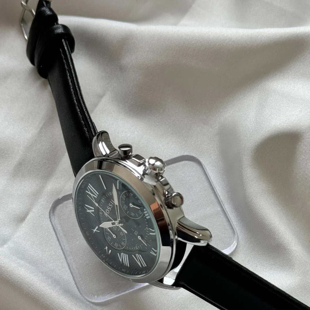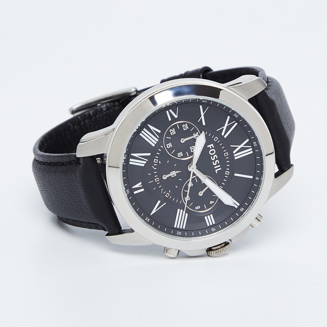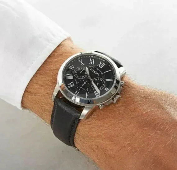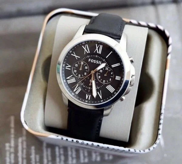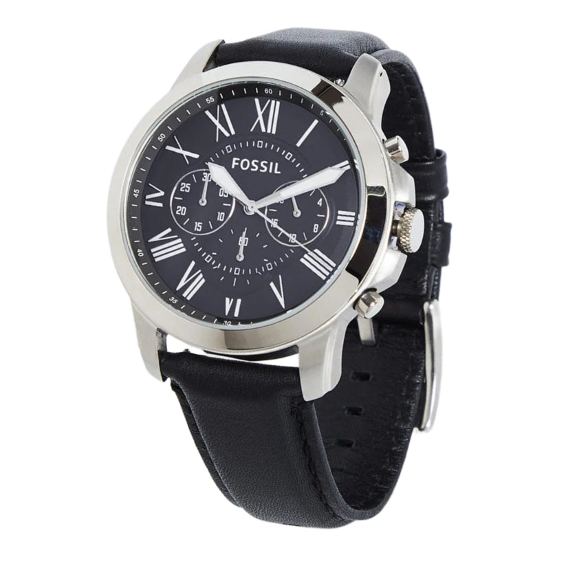 Fossil Chronograph Black & Silver Dial Leather Men's Watch - FS-4812
