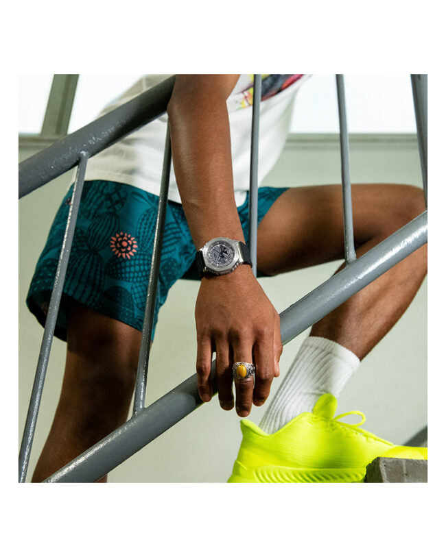 G-shock Metal Covered Silver/Black Round Analog+Digital World Time Multi-Function Resin Band Sports Watch GS-2100